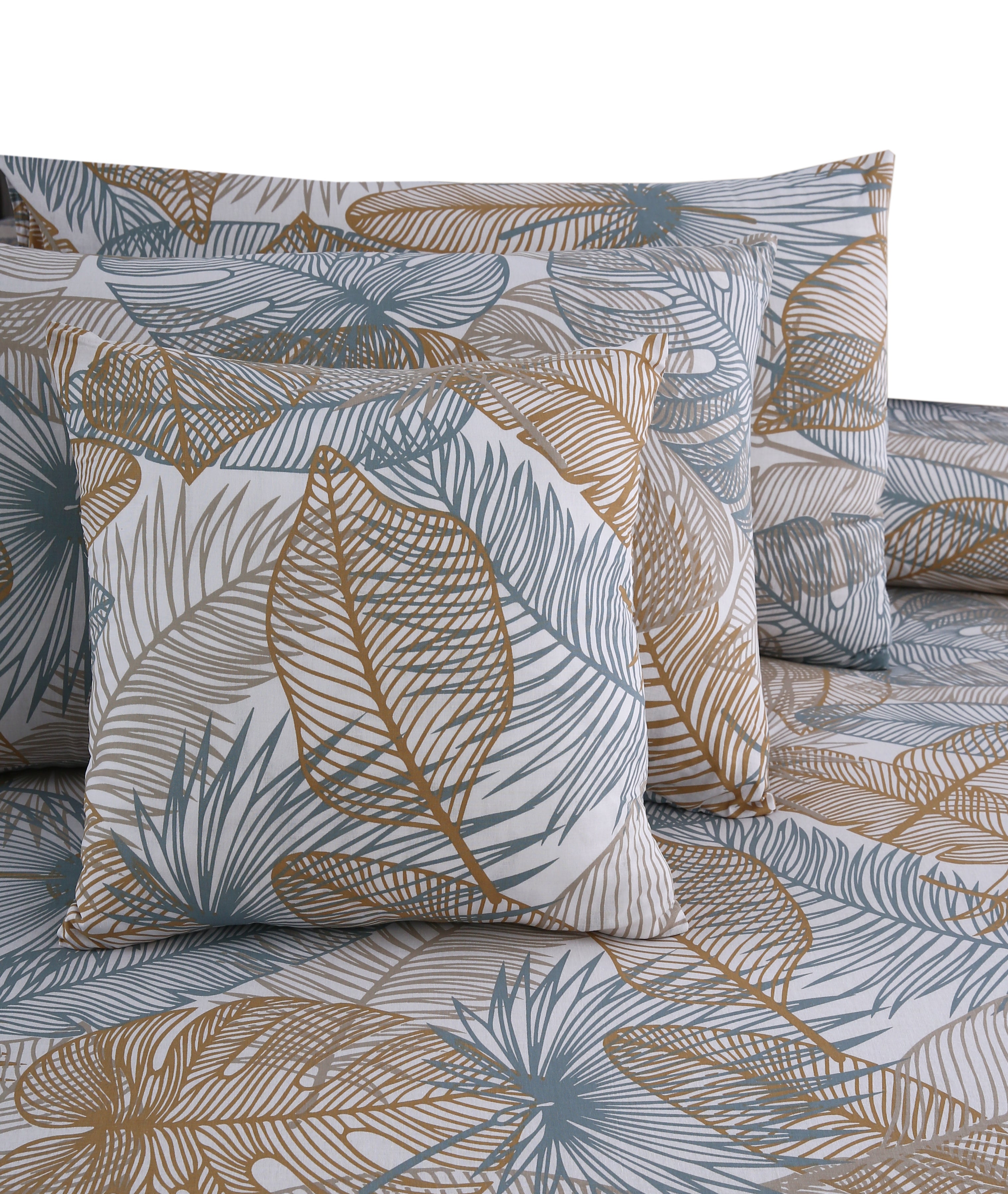 Experience comfort and style with the Windy Leaf 4Pcs Cotton Printed Bedsheet Set. Crafted from high-quality cotton, this set ensures breathability and durability for a restful night's sleep. The elegant printed design adds a touch of sophistication to any bedroom decor. Including a sheet, cushion cover and two pillow covers, it offers a complete bedding solution that’s easy to maintain and perfect for everyday use. Ideal for those who value both aesthetics and comfort in their sleep environment.